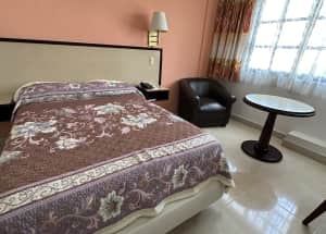 Consta de una cama king size (una cama extragrande) con una ocupación máxima de 2 personas (incluyendo entre niños y adultos) Los servicios en habitación wifi, agua caliente las 24hrs, TV con servicio de cable, aire acondicionado